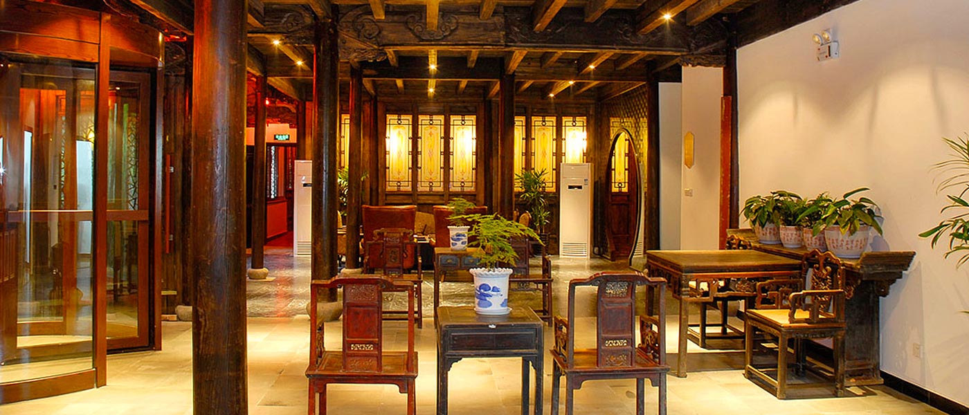 兩府客棧位于(yu)西栅景區(qu)入口外,原江(jiang)浙分(fēn)府客驿。毗鄰停車(che)場(chang),交通(tong)方(fang)便,南(nan)臨西市(shi)河,水街(jiē)貫穿東西,綠樹掩映,空氣(qi)清(qing)新(xin)。酒店(diàn)共有(yǒu)各式(shi)标間、大(da)牀(chuang)共27間。裝(zhuang)修古(gu)樸自然,一(yi)樓附設(shè)中(zhong)型餐廳。